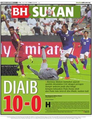 Rasa malu ini jauh melampaui kekecewaan pernah dialami kita semua ketika melihat Malaysia dibelasah UAE menerusi keputusan 0-10 pada tahun 2015 lalu.