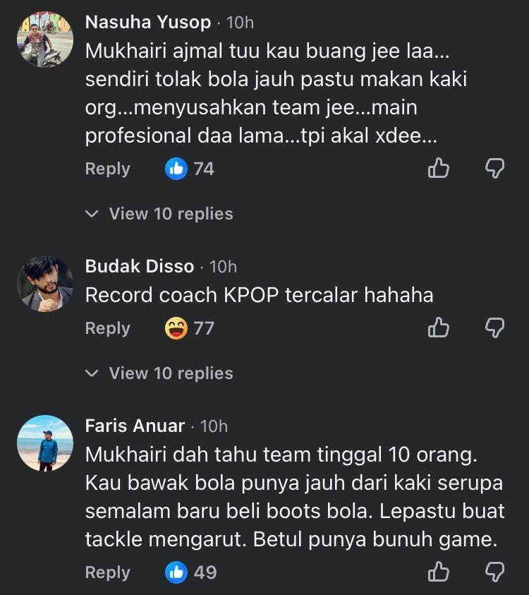 Sebagai contoh aksi semalam, nama Mukhairi Ajmal menjadi antara yang kerap dikritik peminat di media sosial kerana impak diberikan pemain tersebut sangat teruk.