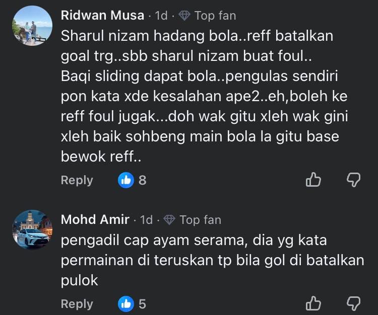 Malah, ada yang turut menyifatkan kualiti pengadil sebagai ‘cap ayam’ dan pelbagai lagi kritikan keras ditujukan kepada Mohd Fusser kerana tidak berpuas hati.