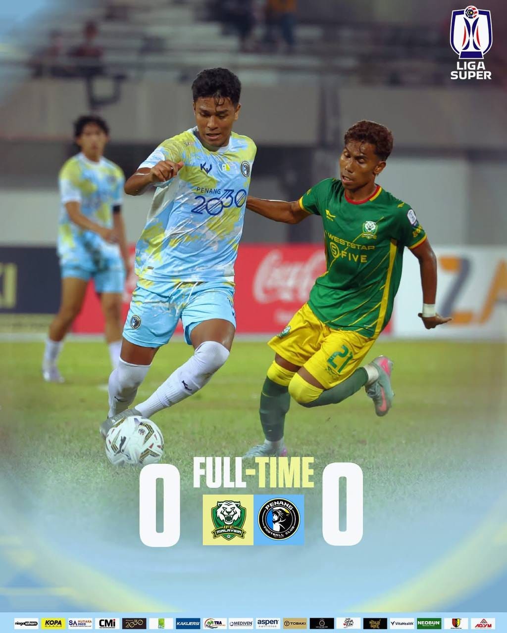 Dengan berbekalkan sembilan pemain sahaja, hasrat Penang untuk cuba mendapatkan kemenangan dan memperbaiki kedudukan semasa liga tidak kesampaian selain sekadar berpuas hati akan satu mata sahaja.