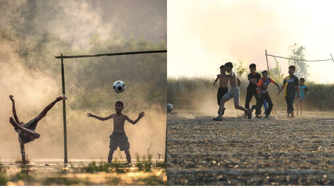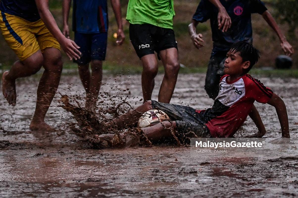 Tapak kaki hitam, badan berdebu, dan calaq sana sini, sikit tak goyahkan budak-budak kampung ni main bola. Kalau tengok betui-betui dah macam arena futsal woo. Banyak ‘court’.